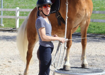Täglich stand individueller Einzelunterricht in den Bereichen Bodenarbeit und Reiten auf dem Plan. Ergänzt wurde das praktische Arbeiten durch spannende Theoriethemen: von der Arbeit im Stand über verschiedene Longierarten bis hin zu Körperbewusstsein und Sitzentwicklung. Jeder Teilnehmer durfte sich zudem über ein persönliches Mini-Coaching-Gespräch freuen.