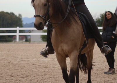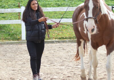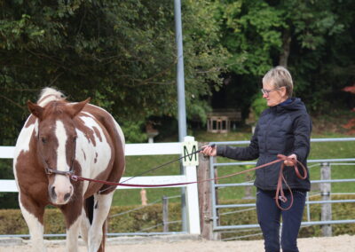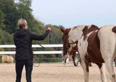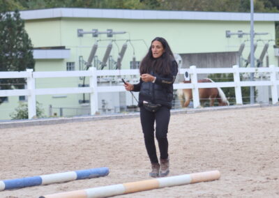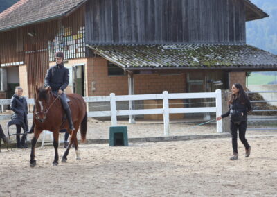 Jede Teilnehmerin erhielt täglich zwei Privatlektionen – wahlweise vom Boden oder im Sattel – ganz individuell nach Wunsch und Ausbildungsstand. Neben der Praxis standen spannende Theorieeinheiten, Blickschulung und gemeinsame Diskussionsrunden auf dem Programm.