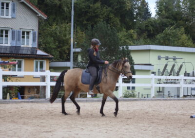 Eine kleine, aber feine Gruppe von vier Teilnehmerinnen nahm an der diesjährigen Herbst-Intensivwoche zur Akademischen Reitkunst teil. Bei trockenem, mildem Herbstwetter konnte man gemütlich den anderen beim Unterricht zusehen und wertvolle Impulse mitnehmen.